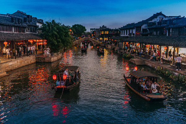 圖為浙江嘉善縣西塘古鎮(zhèn)夜市。資料照片