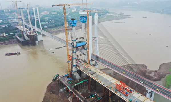 李家沱長江復線橋為重慶軌道交通18號線的控制性工程,工程起于九龍坡區(qū)九龍半島,止于巴南區(qū)李家沱,全長約1306米,主橋為雙塔雙索面斜拉橋,于現(xiàn)有的李家沱長江大橋上游側約52米處平行跨越長江。