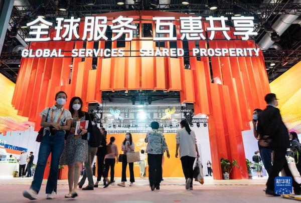 觀眾在2022年中國國際服務貿易交易會上參觀中國服務貿易成就展專區(qū)(2022年9月1日攝)。新華社記者 才揚 攝