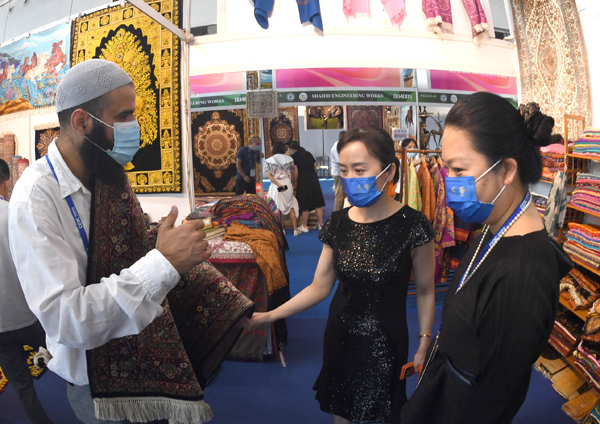 9月19日,觀眾在東博會(huì)上挑選巴基斯坦商品。
