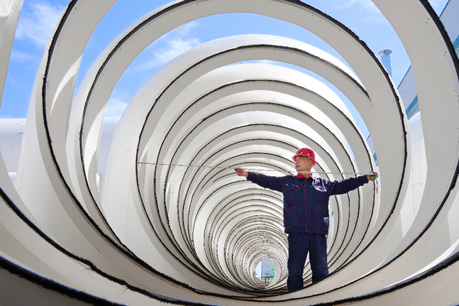 通榆是吉林西部的“風(fēng)口”,風(fēng)電裝機(jī)容量占全省1/3。在通榆三一風(fēng)電裝備技術(shù)有限責(zé)任公司的零碳智造產(chǎn)業(yè)園里,工人們正在車(chē)間忙著組裝主機(jī),院內(nèi)一個(gè)個(gè)巨大葉片壯觀排列等待裝車(chē)。公司行政經(jīng)理陳永春說(shuō),近年來(lái)基礎(chǔ)設(shè)施改善,企業(yè)運(yùn)輸時(shí)間成本降低了,設(shè)備遠(yuǎn)銷(xiāo)新疆、甘肅、云南等省區(qū)。