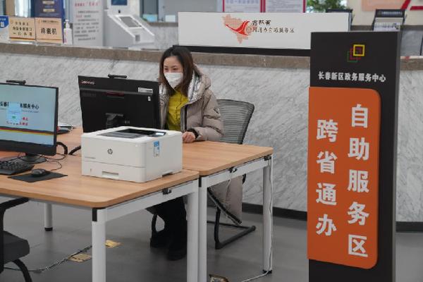 在長春新區(qū)政務(wù)服務(wù)中心,一名企業(yè)辦事員在自助辦理業(yè)務(wù)(2022年12月29日攝)。新華社記者 司曉帥 攝