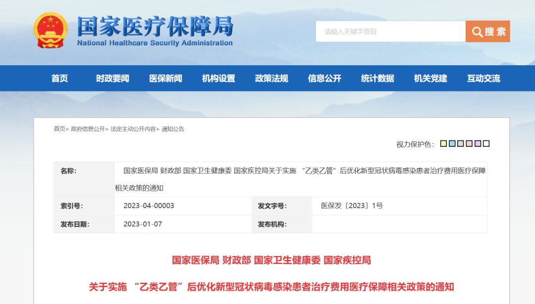 1月7日,國家醫(yī)保局、財(cái)政部、國家衛(wèi)生健康委、國家疾控局四部門聯(lián)合發(fā)布《關(guān)于實(shí)施 “乙類乙管”后優(yōu)化新型冠狀病毒感染患者治療費(fèi)用醫(yī)療保障相關(guān)政策的通知》(以下簡稱《通知》)。
