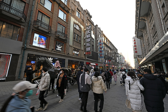 2022年12月31日,市民游客在天津市金街步行街購物休閑。新華社記者 趙子碩 攝