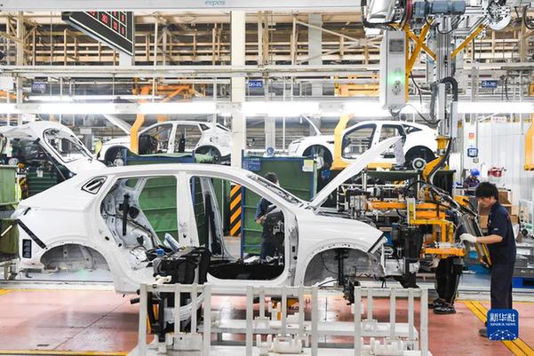 這是2022年6月16日拍攝的重慶長(zhǎng)安汽車股份有限公司智能化工廠作業(yè)現(xiàn)場(chǎng)。新華社記者 王全超 攝