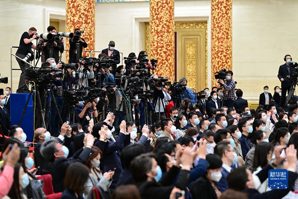 記者會(huì)在人民大會(huì)堂三樓金色大廳舉行,歷時(shí)約80分鐘,參加采訪的中外記者約500人。