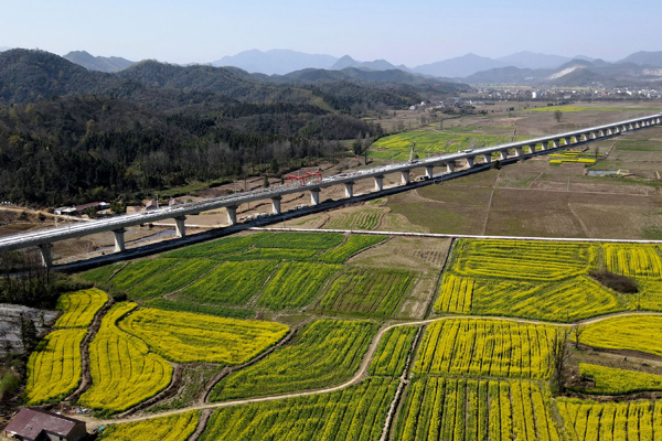 近日,在中鐵十一局池(州)黃(山)鐵路建設(shè)現(xiàn)場(chǎng),工人們搶抓工期進(jìn)行無(wú)砟軌道施工,為后續(xù)鋪軌打好基礎(chǔ)。池黃鐵路全長(zhǎng)約125公里,設(shè)計(jì)時(shí)速350公里,是武(漢)杭(州)快速鐵路通道的重要組成部分。