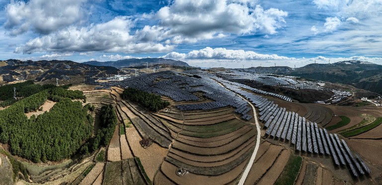 這是3月20日拍攝的云南省巧家縣海壩光伏電站(無人機照片)。金沙江下游風光水儲一體化國家級示范基地位于金沙江下游干熱河谷地段,主要依靠當?shù)厮婇_發(fā)項目統(tǒng)籌建設(shè)風能、太陽能電站。目前,云南省巧家縣海壩、小羊窩等光伏項目已投產(chǎn)發(fā)電。