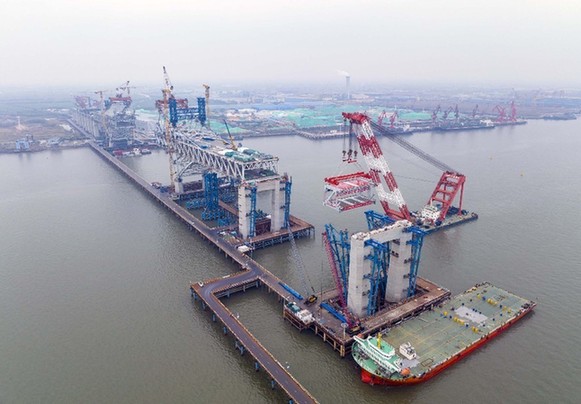 常泰長(zhǎng)江大橋是一座公鐵兩用斜拉橋,連接江蘇省常州市與泰州市。建成后,主航道橋主跨達(dá)1176米,將成為世界上跨度最大的斜拉橋。