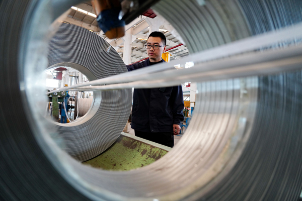 4月13日,唐山市一家線纜出口企業(yè)的工人在車間內(nèi)工作。