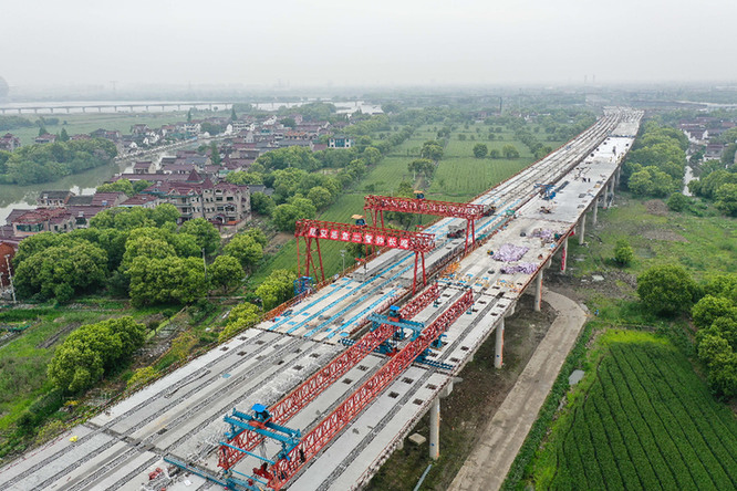 眼下,由中鐵二十局承建的蘇州至臺(tái)州高速公路七都至桃源段ST-QL5標(biāo)建設(shè)正有序推進(jìn)。該標(biāo)段全長(zhǎng)約4公里,主要工程為主線橋梁2座,互通匝道橋梁3座,地面橋梁4座。目前,項(xiàng)目正在進(jìn)行橋梁基礎(chǔ)及下部結(jié)構(gòu)施工、預(yù)制箱梁生產(chǎn)架設(shè)等。新華社記者 季春鵬 攝
