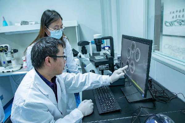 中國農(nóng)業(yè)科學(xué)院蘭州畜牧與獸藥研究所博士岳耀敬和團(tuán)隊(duì)成員討論羔羊體外胚胎發(fā)育實(shí)驗(yàn)。