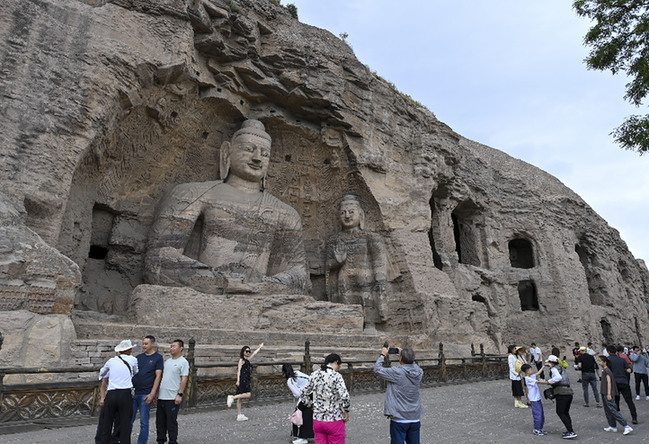 游客在云岡石窟參觀。記者 楊晨光 攝