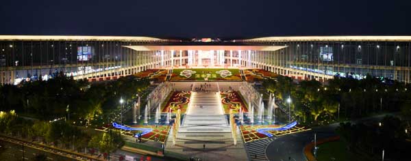 2022年11月5日至10日,第五屆中國國際進(jìn)口博覽會在國家會展中心(上海)舉行。這是11月5日拍攝的國家會展中心(上海)夜景。新華社記者 劉穎 攝