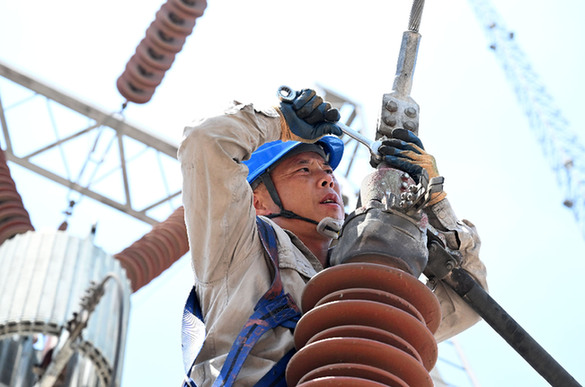 近日,在天津市220千伏武清變電站,國(guó)網(wǎng)天津市電力公司工作人員在檢修站內(nèi)設(shè)備?! ⌒氯A社記者 趙子碩 攝