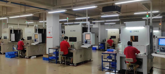 鷹潭萬成光學(xué)科技有限公司的生產(chǎn)車間的工人正在生產(chǎn)。受訪單位供圖