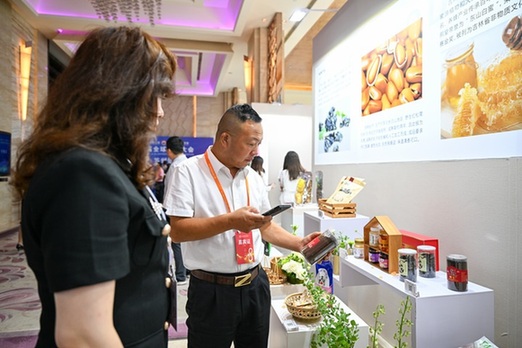 參會(huì)嘉賓在第八屆全球吉商大會(huì)上參觀吉林特色商品?! ⌒氯A社記者 顏麟蘊(yùn) 攝