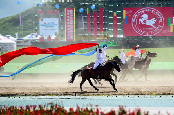 圖為演員在2023興安盟那達慕開幕式上表演。