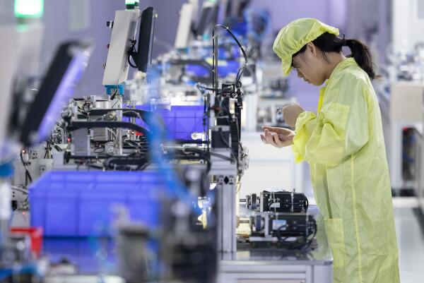 8月14日,在贛州訊康電子科技有限公司,工作人員檢查T1-T2全自動穿環(huán)機生產(chǎn)的元器件。江西省贛州市著力建設具有完整性、先進性、安全性的現(xiàn)代化產(chǎn)業(yè)體系,堅持把發(fā)展經(jīng)濟的著力點放在實體經(jīng)濟上,做優(yōu)品牌做強產(chǎn)業(yè),推動產(chǎn)業(yè)高質(zhì)量發(fā)展。新華社記者 才揚 攝