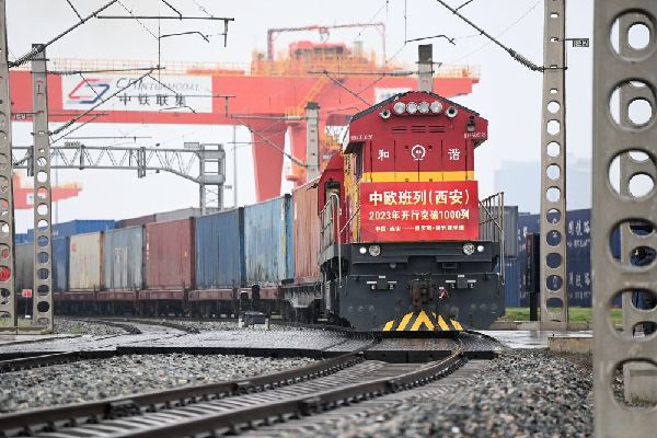 2023年3月23日,X8489次中歐班列從西安國際港站駛出開往俄羅斯謝利亞季諾。新華社記者 李一博 攝