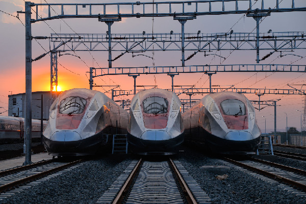 在印度尼西亞萬(wàn)隆,雅萬(wàn)高鐵高速動(dòng)車(chē)組??吭谘湃f(wàn)高鐵德卡魯爾動(dòng)車(chē)所附近(8月17日攝)。