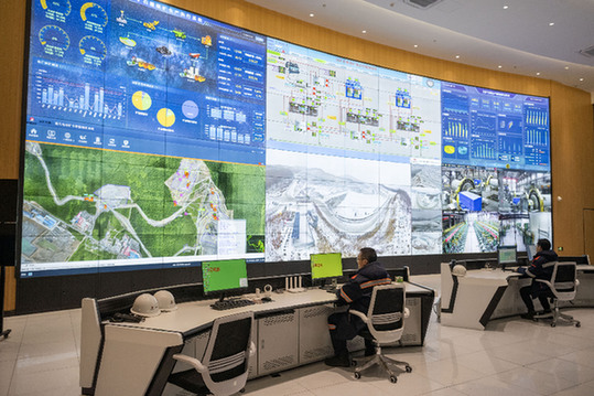 在位于鶴崗市蘿北縣的中國五礦集團(tuán)(黑龍江)石墨產(chǎn)業(yè)有限公司,工作人員在智慧管控中心內(nèi)作業(yè)。 記者 謝劍飛 攝
