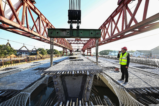 圖為中鐵二十局工作人員在蘇臺(tái)高速公路七都至桃源段ST-QL5標(biāo)主線橋梁架設(shè)現(xiàn)場(chǎng)指揮。近日,由中鐵二十局承建的蘇臺(tái)高速公路七都至桃源段ST-QL5標(biāo)主線橋梁全幅貫通,為建成通車打下堅(jiān)實(shí)基礎(chǔ)。據(jù)介紹,蘇州至臺(tái)州高速公路七都至桃源段ST-QL5標(biāo)項(xiàng)目為江蘇省重點(diǎn)工程。