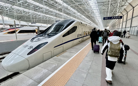 不少北京市民從北京北站乘坐京張高鐵的“滑雪專列”去河北省張家口市崇禮區(qū)的冬奧滑雪場(chǎng)滑雪、賞雪?!∮浾摺±钚馈z