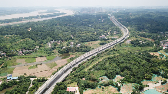 2023年6月28日,長(zhǎng)株潭城際軌道交通西環(huán)線一期工程開通運(yùn)營(yíng)。這是湖南省首條跨市城市軌道交通線路,開通后長(zhǎng)沙和湘潭之間的通勤時(shí)間縮短至20分鐘左右,極大方便了兩市市民跨市出行。圖為當(dāng)日拍攝的長(zhǎng)株潭城際軌道交通西環(huán)線一期工程的高架軌道(無(wú)人機(jī)照片)。記者 陳澤國(guó) 攝
