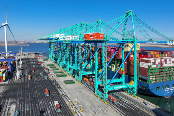 ——叫響津港效率“金招牌”。推進(jìn)智慧平臺建設(shè),天津港電子商務(wù)網(wǎng)、港口智能管控平臺、關(guān)港集疏港平臺等數(shù)字化平臺穩(wěn)定應(yīng)用,集裝箱主要業(yè)務(wù)單證電子化率達(dá)100%、線上受理率超95%。廣泛推進(jìn)智能閘口建設(shè),集卡平均作業(yè)時(shí)間縮短至16分鐘以內(nèi)。引航拖輪協(xié)同智控中心投入使用,靠離泊效率提升8%。外貿(mào)集裝箱船舶準(zhǔn)班率位居全球前列。2019年以來120次打破各貨類效率紀(jì)錄,“2M北歐一線”、中遠(yuǎn)海運(yùn)美西線、韓新海運(yùn)歐洲線等重點(diǎn)航線效率保持全球第一,“津港效率,全球領(lǐng)先”品牌持續(xù)叫響。