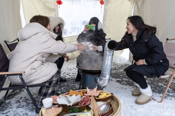 “不僅可以參與冰雪運(yùn)動(dòng)、賞雪景,還能涮火鍋,燒柴、生火、燙菜……全都自己動(dòng)手,這樣的體驗(yàn)新鮮又有趣?!蔽逆和┱f(shuō)。
