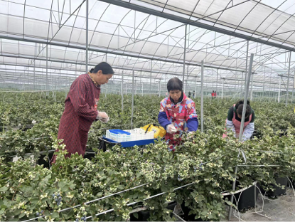 圖為藍(lán)莓種植大棚內(nèi),工人正在忙碌采摘。熊嘉藝攝