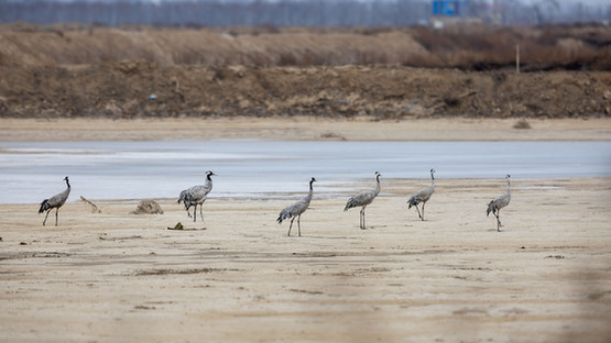 2月4日,在河北省黃金海岸保護(hù)區(qū)拍攝的國(guó)家二級(jí)保護(hù)動(dòng)物灰鶴。(受訪單位供圖)