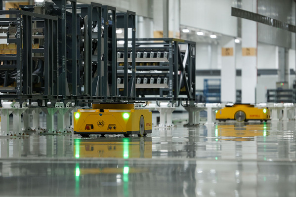 從空中俯瞰大眾安徽MEB工廠,一輛輛大貨車陸續(xù)排隊進(jìn)入園區(qū),運(yùn)送物料;步入車間,AGV小車有序往來,準(zhǔn)備出口歐洲的訂單正在這里抓緊生產(chǎn)等待交付。