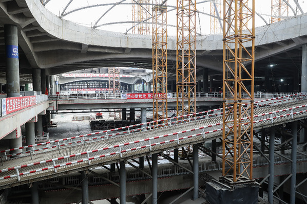 北京城市副中心站綜合交通樞紐工程建設(shè)現(xiàn)場。記者 單宇琦 攝