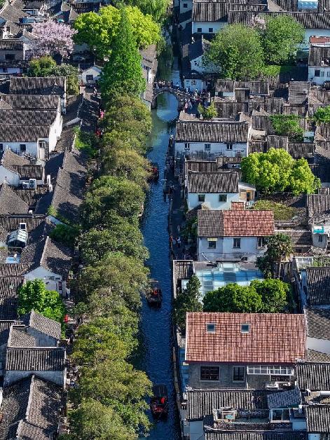 這是4月18日拍攝的蘇州平江歷史文化街區(qū)(無(wú)人機(jī)照片)。新華社記者李博 攝