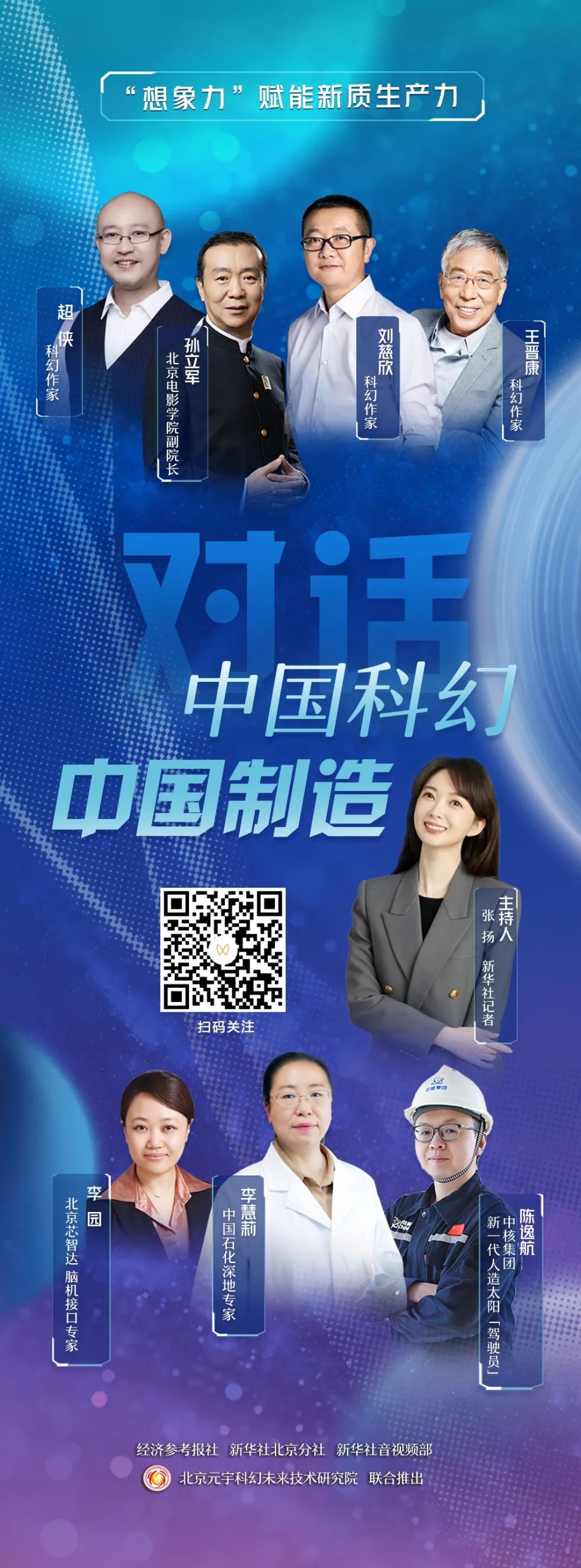 這一季,北京元宇科幻未來技術(shù)研究院院長、科幻作家劉慈欣,北京元宇科幻未來技術(shù)研究院名譽院長、科幻作家王晉康,北京元宇科幻未來技術(shù)研究院副院長、科幻作家超俠,導演、教授、北京電影學院副院長孫立軍,以及中國石化石油勘探開發(fā)研究院首席專家李慧莉,中核集團新一代人造太陽“駕駛員”陳逸航,北京芯智達腦機接口專家李園,在直播間進行了一個多小時的跨界碰撞。對話過程精彩紛呈、亮點不斷。到底都有哪些看點?快來一睹為快→
