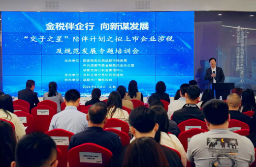 5月8日,成都市“交子之星”陪伴計劃之?dāng)M上市企業(yè)涉稅及規(guī)范發(fā)展專題培訓(xùn)會在深交所西部基地舉辦,全市85戶擬上市企業(yè)代表參加培訓(xùn)。本次活動由國家稅務(wù)總局成都市稅務(wù)局、中共成都市委金融委員會辦公室、成都住房公積金管理中心主辦,深交所西部基地承辦。
