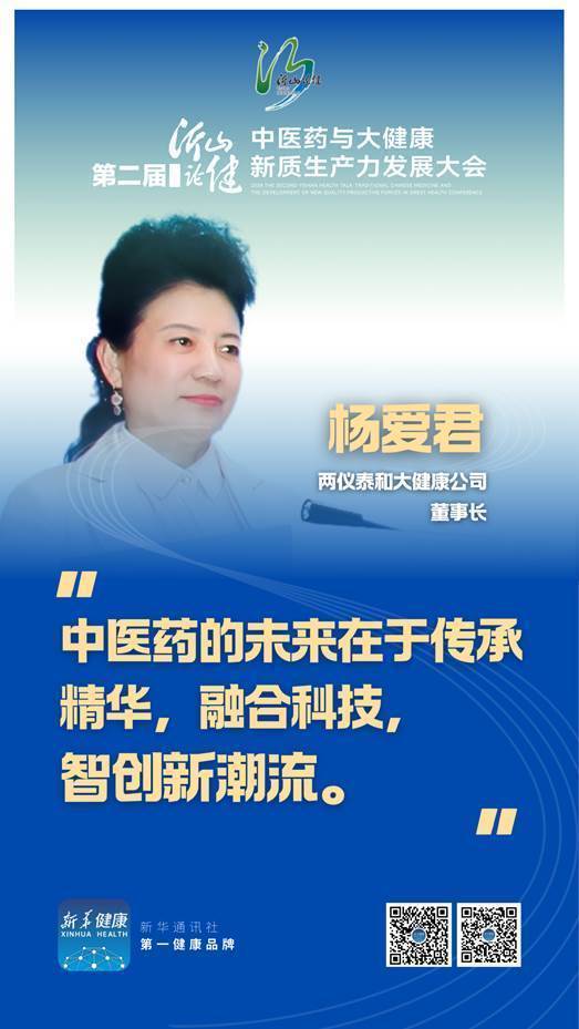 日前,第二屆“沂山論健·中醫(yī)藥與大健康新質(zhì)生產(chǎn)力發(fā)展大會”在山東省濰坊市臨朐縣舉行。大會期間兩儀泰和大健康產(chǎn)業(yè)有限公司董事長楊愛君接受新華社“新華健康”記者專訪時,分享了她做為傳統(tǒng)企業(yè)負責人對探索創(chuàng)新型生物醫(yī)藥企業(yè)新賽道的思考,并展望了中醫(yī)藥與現(xiàn)代科技融合的未來。