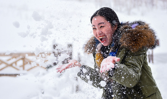 長(zhǎng)白山景區(qū)內(nèi)玩雪的游客?!∮浾摺⊥蹶伙w 攝