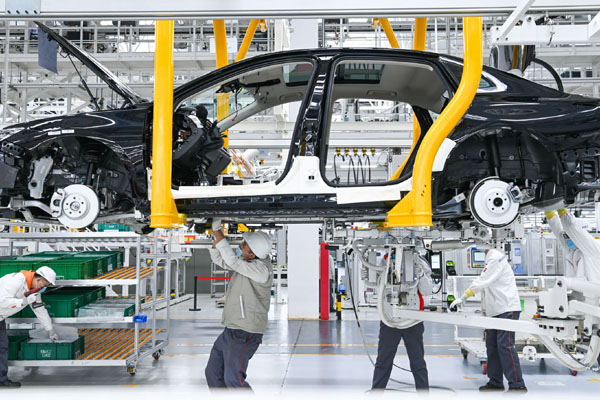 ——搶抓機(jī)遇,助力“汽車城”駛?cè)胄履茉雌嚠a(chǎn)業(yè)快車道。東風(fēng)大街上,“第一汽車制造廠奠基紀(jì)念”漢白玉基石巍然矗立,廠區(qū)的紅墻保留著建廠時(shí)的風(fēng)貌。而走入一汽紅旗繁榮工廠的廠門,取代“懷舊風(fēng)”的,是一派現(xiàn)代化圖景:車間寬敞明亮,無(wú)人小車穿梭其間,靈活避障,自動(dòng)機(jī)械臂手舞足蹈,緊張忙碌,工人操作聚精會(huì)神,有條不紊。