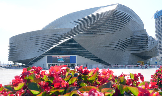 圖為6月25日拍攝的第十五屆夏季達沃斯論壇主會場大連國際會議中心外景。 新華社記者 章磊 攝