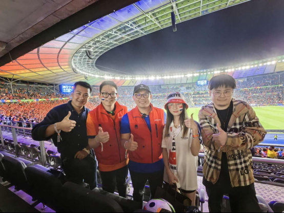 比賽當(dāng)天,京東采銷早早就來到柏林奧林匹克體育場(chǎng),通過直播帶領(lǐng)大家領(lǐng)略了球場(chǎng)外的氛圍、品嘗球場(chǎng)周邊的德國當(dāng)?shù)仄【啤⒔榻B荷蘭和土耳其兩支球隊(duì)此前的表現(xiàn),并拿出了迷你足球裝備與現(xiàn)場(chǎng)球迷共同切磋球技。同時(shí),針對(duì)直播間觀眾關(guān)于球場(chǎng)內(nèi)外的問題,京東采銷也進(jìn)行了互動(dòng)解答,讓大家在屏幕前也能身臨其境地感受到歐洲杯的火熱氛圍。