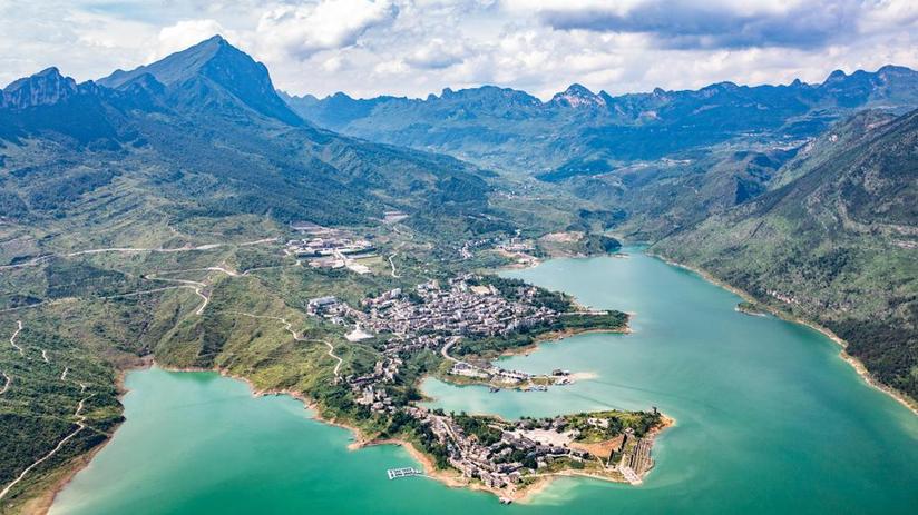 ??2024年7月10日拍攝的六盤水市六枝特區(qū)牂牁江風(fēng)景名勝區(qū)風(fēng)光(無(wú)人機(jī)照片)。新華社記者 陶亮 攝