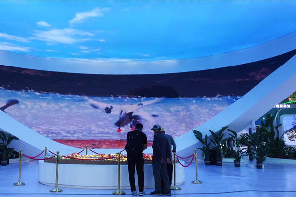 正如楊棟所說,青洽會(huì)現(xiàn)場(chǎng)最吸引人的是綠色發(fā)展館。記者在展館入口處的一個(gè)沙盤前看到,一根根白色風(fēng)力發(fā)電桿點(diǎn)綴著綠草如茵的山坡,一塊塊光伏發(fā)電板拼成了“藍(lán)色海洋”,深山峽口處的抽水蓄能電站則更顯山勢(shì)的雄偉……大美青海的山川戈壁,在綠色成為發(fā)展主色調(diào)的今天,處處有新機(jī)。