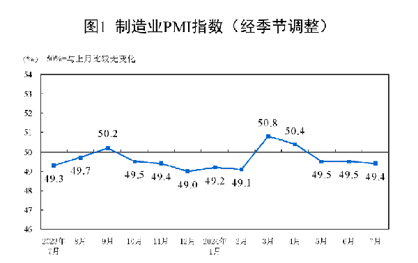 7月份制造業(yè)采購經(jīng)理指數(shù)為49.4%