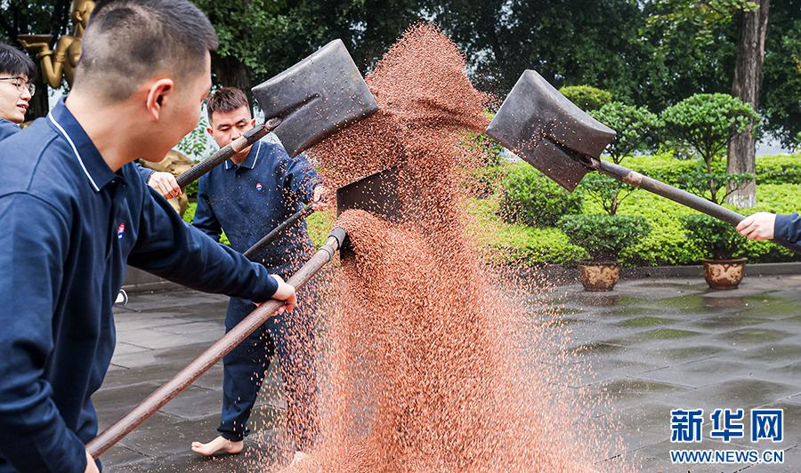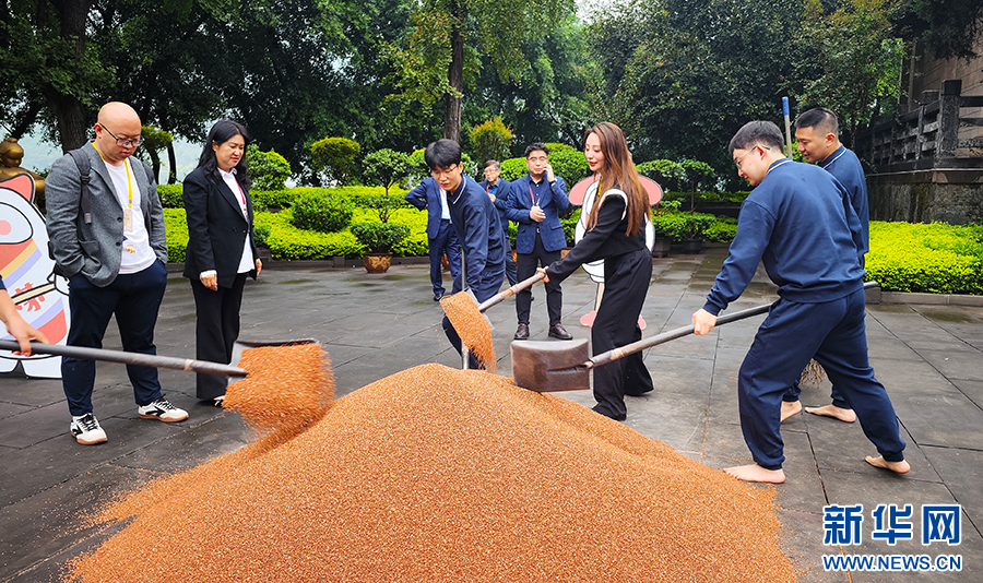 10月11日,參加茅臺(tái)酒節(jié)的嘉賓在茅臺(tái)中國(guó)酒文化城體驗(yàn)“下沙”工藝。新華網(wǎng) 盧志佳 攝