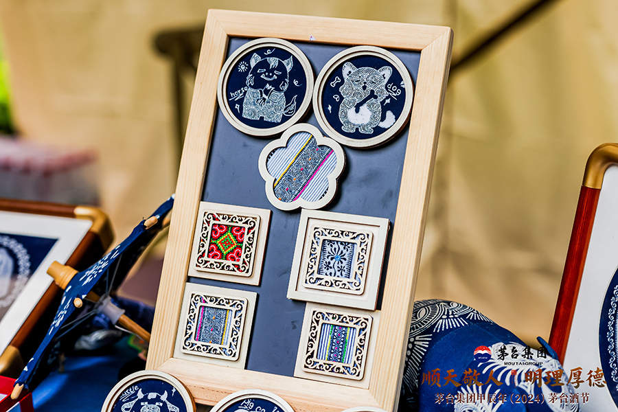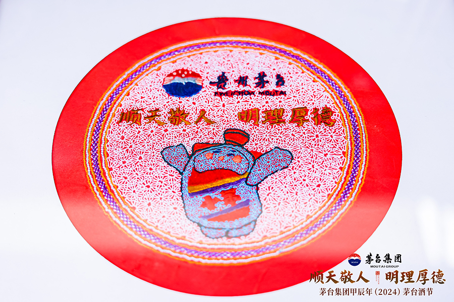 10月11日,用貴州水族馬尾繡繡成的茅臺(tái)“小茅”形象。