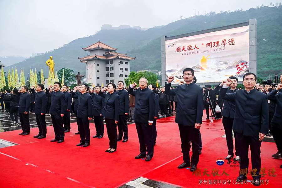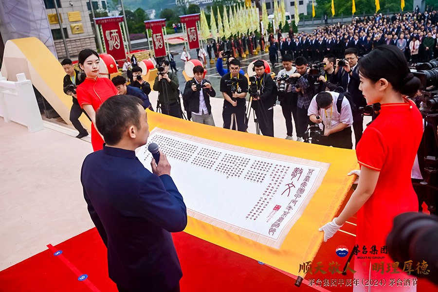 10月11日,茅臺(tái)人恭讀《甲辰年 2024年茅臺(tái)酒節(jié)敬文》。