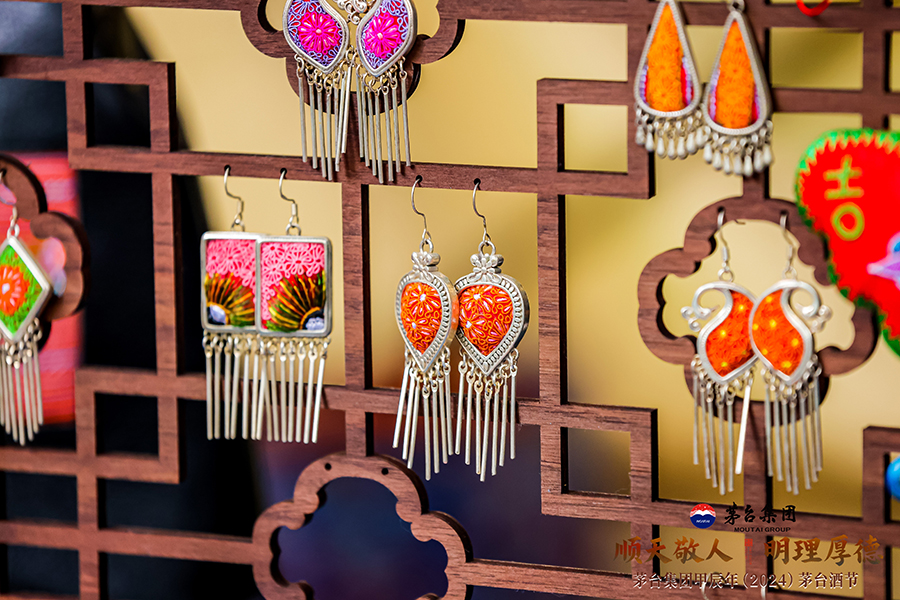 10月11日,茅臺(tái)酒節(jié)現(xiàn)場(chǎng)展示的各類貴州非遺工藝品。
